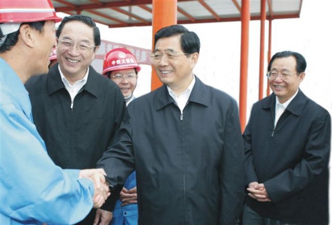国家领导人胡锦涛莅临大桥局钢筋场检查工作