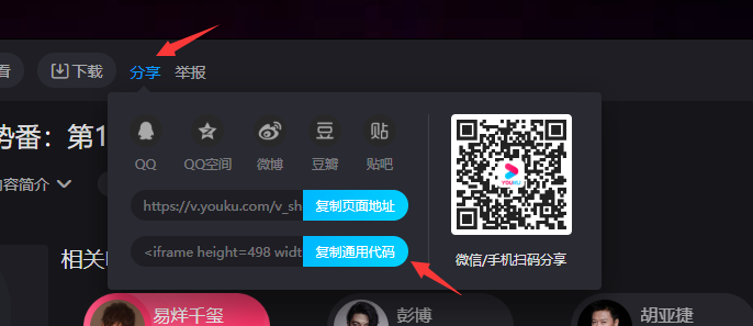 3.外链播放器代码:可以从优酷,爱奇艺,腾讯视频等获取到视频代码,填写即可。缺点是可能会有广告,只支持网页端,不支持在app和小程序里播放。